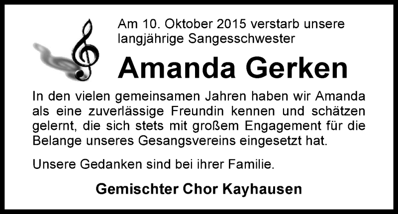 Hier finden Sie alle Traueranzeigen aus der Zeitung, die bisher für Amanda Gerken erschienen sind. Weitere Traueranzeigen, die in der Zeitung erscheinen, werden hier ebenfalls aufgelistet