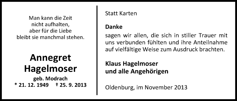 Hier finden Sie alle Traueranzeigen aus der Zeitung, die bisher für Annegret Hagelmoser erschienen sind. Weitere Traueranzeigen, die in der Zeitung erscheinen, werden hier ebenfalls aufgelistet