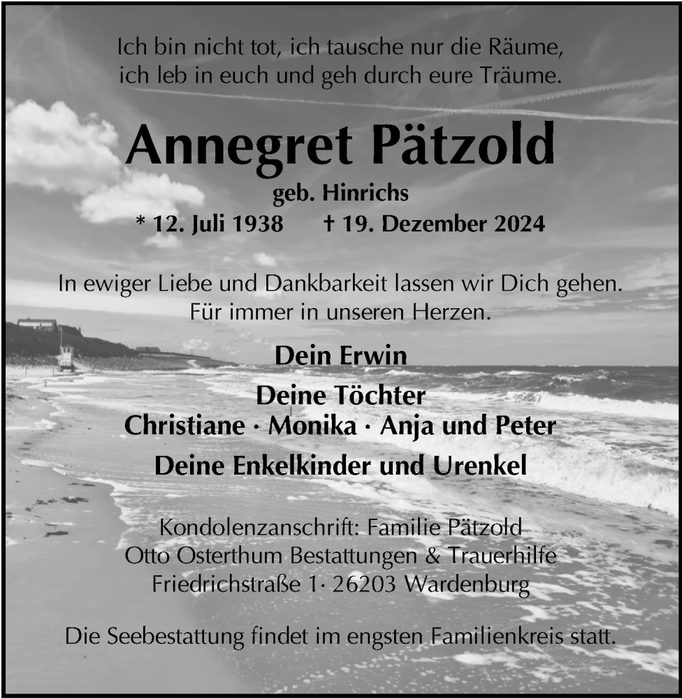 Hier finden Sie alle Traueranzeigen aus der Zeitung, die bisher für Annegret Pätzold erschienen sind. Weitere Traueranzeigen, die in der Zeitung erscheinen, werden hier ebenfalls aufgelistet