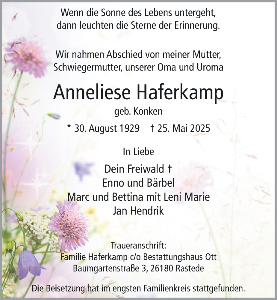 Hier finden Sie alle Traueranzeigen aus der Zeitung, die bisher für Anneliese Haferkamp erschienen sind. Weitere Traueranzeigen, die in der Zeitung erscheinen, werden hier ebenfalls aufgelistet