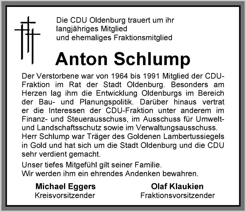 Hier finden Sie alle Traueranzeigen aus der Zeitung, die bisher für Anton Schlump erschienen sind. Weitere Traueranzeigen, die in der Zeitung erscheinen, werden hier ebenfalls aufgelistet