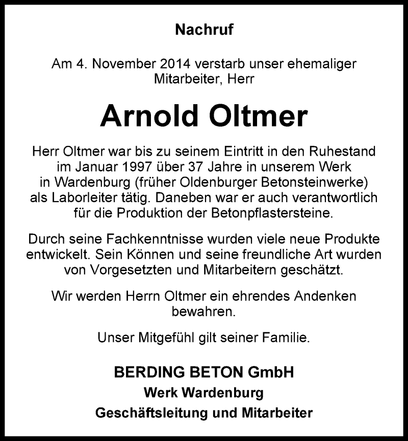 Hier finden Sie alle Traueranzeigen aus der Zeitung, die bisher für Arnold Oltmer erschienen sind. Weitere Traueranzeigen, die in der Zeitung erscheinen, werden hier ebenfalls aufgelistet