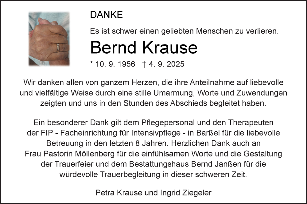 Hier finden Sie alle Traueranzeigen aus der Zeitung, die bisher für Bernd Krause erschienen sind. Weitere Traueranzeigen, die in der Zeitung erscheinen, werden hier ebenfalls aufgelistet