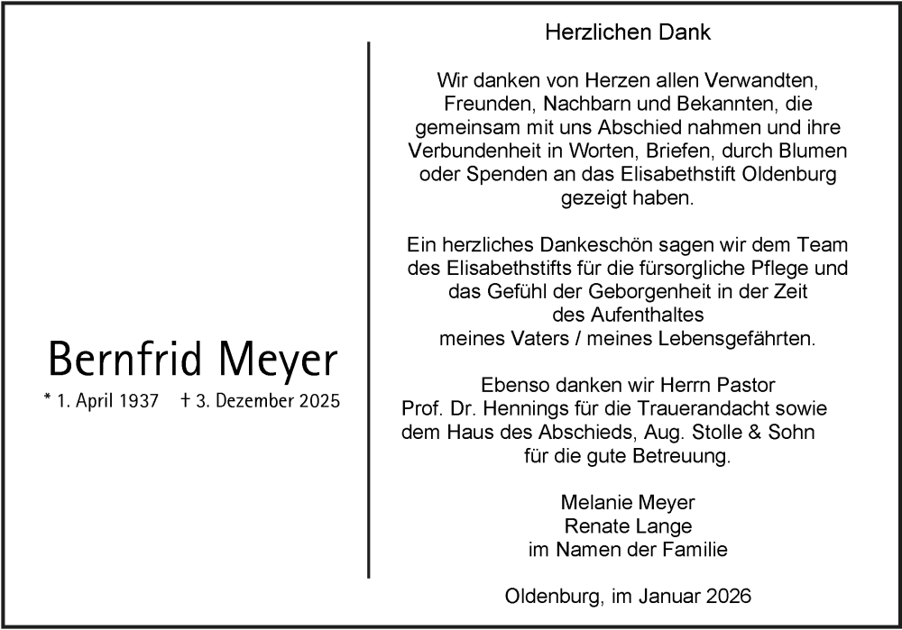 Hier finden Sie alle Traueranzeigen aus der Zeitung, die bisher für Bernfrid Meyer erschienen sind. Weitere Traueranzeigen, die in der Zeitung erscheinen, werden hier ebenfalls aufgelistet