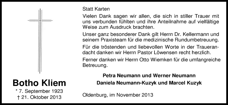 Hier finden Sie alle Traueranzeigen aus der Zeitung, die bisher für Botho Kliem erschienen sind. Weitere Traueranzeigen, die in der Zeitung erscheinen, werden hier ebenfalls aufgelistet