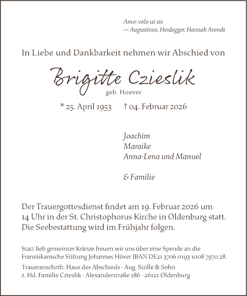 Hier finden Sie alle Traueranzeigen aus der Zeitung, die bisher für Brigitte Czieslik erschienen sind. Weitere Traueranzeigen, die in der Zeitung erscheinen, werden hier ebenfalls aufgelistet