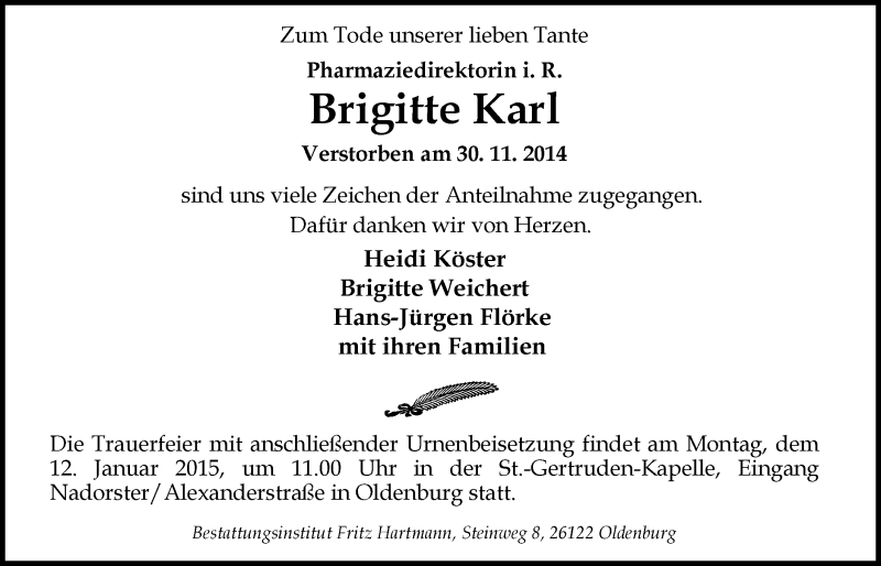 Hier finden Sie alle Traueranzeigen aus der Zeitung, die bisher für Brigitte Karl erschienen sind. Weitere Traueranzeigen, die in der Zeitung erscheinen, werden hier ebenfalls aufgelistet