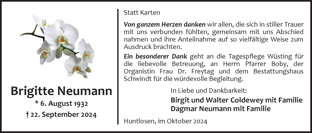 Hier finden Sie alle Traueranzeigen aus der Zeitung, die bisher für Brigitte Neumann erschienen sind. Weitere Traueranzeigen, die in der Zeitung erscheinen, werden hier ebenfalls aufgelistet