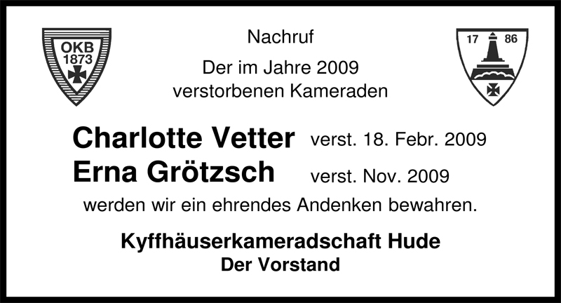 Hier finden Sie alle Traueranzeigen aus der Zeitung, die bisher für Charlotte Vetter erschienen sind. Weitere Traueranzeigen, die in der Zeitung erscheinen, werden hier ebenfalls aufgelistet