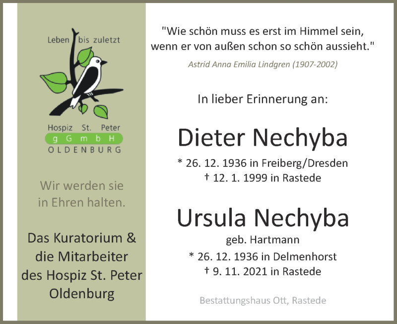 Hier finden Sie alle Traueranzeigen aus der Zeitung, die bisher für Dieter Nechyba erschienen sind. Weitere Traueranzeigen, die in der Zeitung erscheinen, werden hier ebenfalls aufgelistet