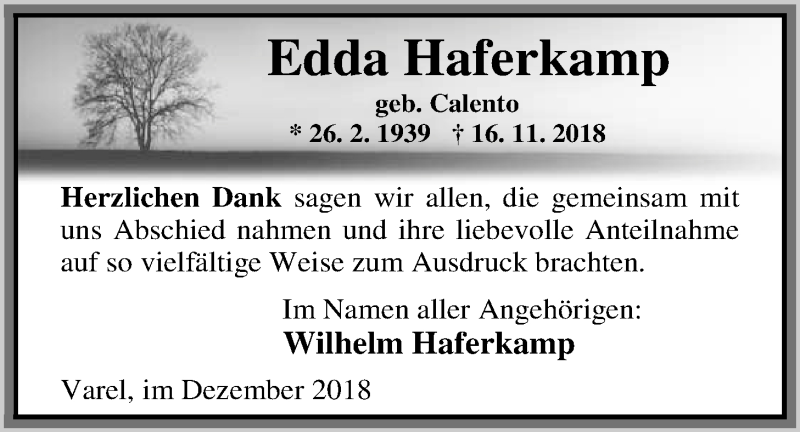 Hier finden Sie alle Traueranzeigen aus der Zeitung, die bisher für Edda Haferkamp erschienen sind. Weitere Traueranzeigen, die in der Zeitung erscheinen, werden hier ebenfalls aufgelistet