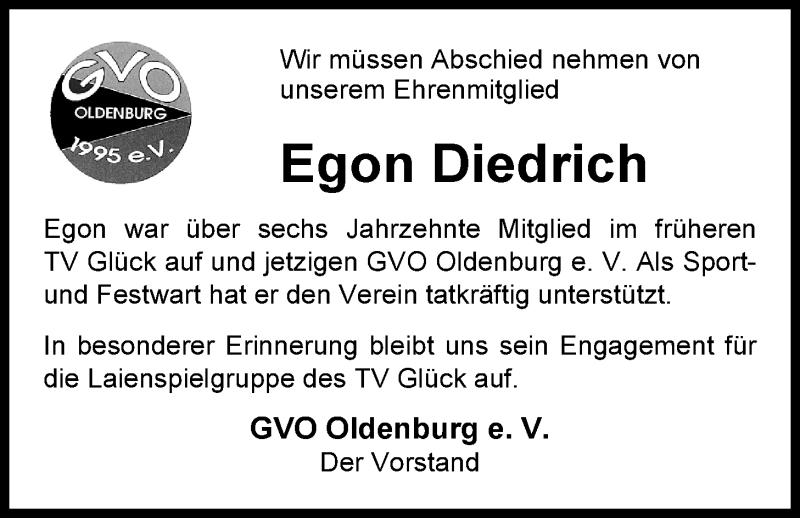 Hier finden Sie alle Traueranzeigen aus der Zeitung, die bisher für Egon Diedrich erschienen sind. Weitere Traueranzeigen, die in der Zeitung erscheinen, werden hier ebenfalls aufgelistet