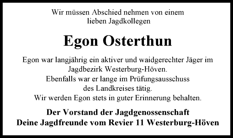 Hier finden Sie alle Traueranzeigen aus der Zeitung, die bisher für Egon Osterthun erschienen sind. Weitere Traueranzeigen, die in der Zeitung erscheinen, werden hier ebenfalls aufgelistet