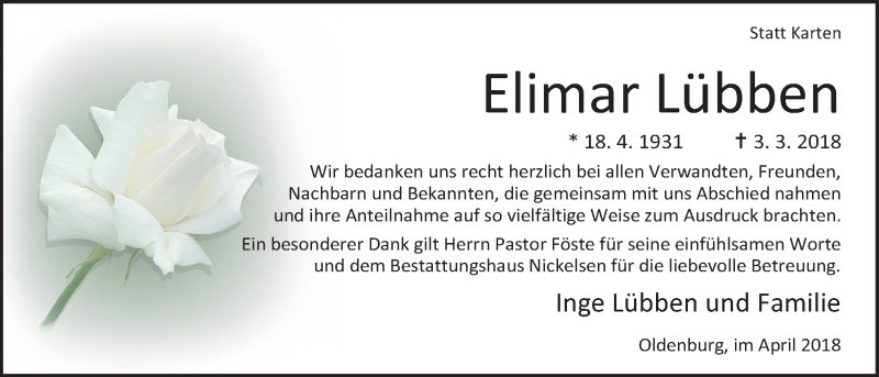 Hier finden Sie alle Traueranzeigen aus der Zeitung, die bisher für Elimar Lübben erschienen sind. Weitere Traueranzeigen, die in der Zeitung erscheinen, werden hier ebenfalls aufgelistet