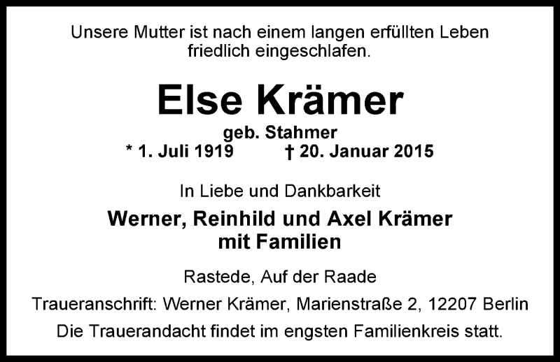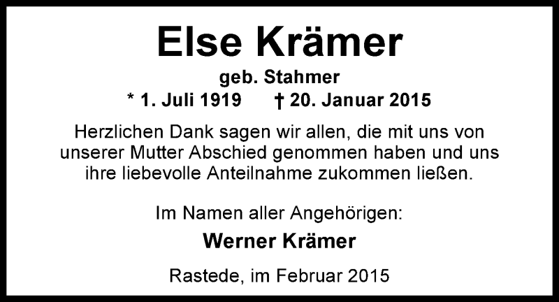 Hier finden Sie alle Traueranzeigen aus der Zeitung, die bisher für Else Krämer erschienen sind. Weitere Traueranzeigen, die in der Zeitung erscheinen, werden hier ebenfalls aufgelistet