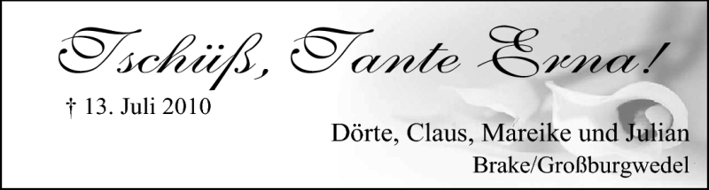 Hier finden Sie alle Traueranzeigen aus der Zeitung, die bisher für Erna Röfer erschienen sind. Weitere Traueranzeigen, die in der Zeitung erscheinen, werden hier ebenfalls aufgelistet