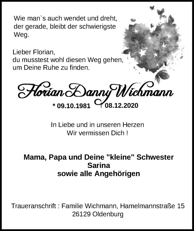 Hier finden Sie alle Traueranzeigen aus der Zeitung, die bisher für Florian Danny Wichmann erschienen sind. Weitere Traueranzeigen, die in der Zeitung erscheinen, werden hier ebenfalls aufgelistet