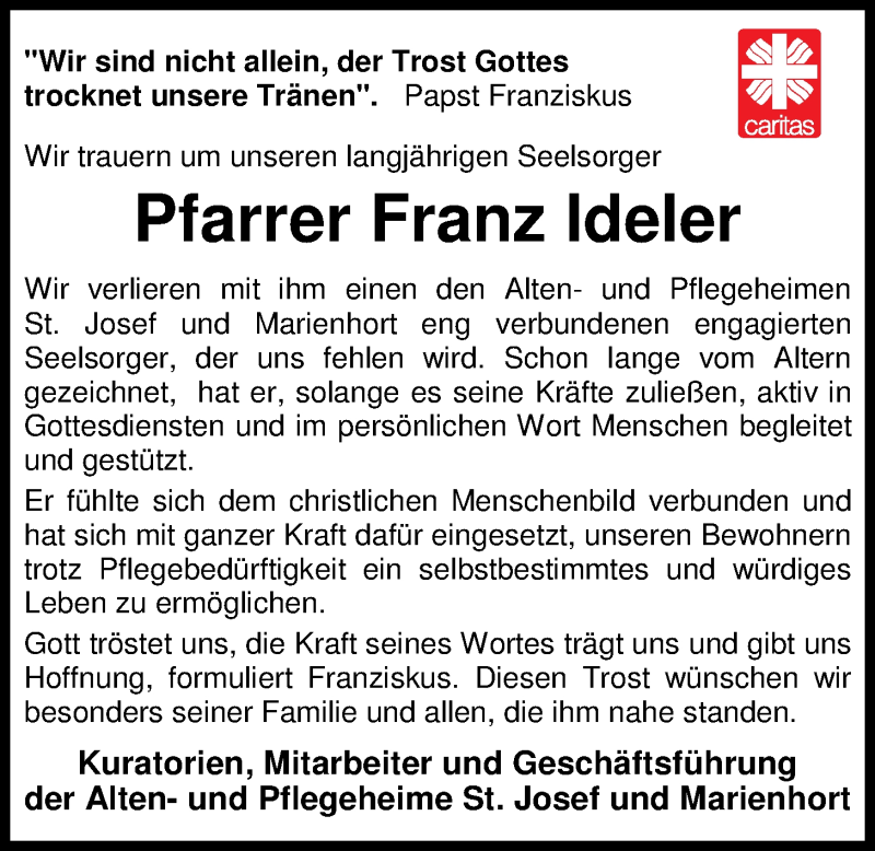 Hier finden Sie alle Traueranzeigen aus der Zeitung, die bisher für Franz Ideler erschienen sind. Weitere Traueranzeigen, die in der Zeitung erscheinen, werden hier ebenfalls aufgelistet