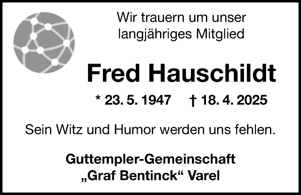 Hier finden Sie alle Traueranzeigen aus der Zeitung, die bisher für Fred Hauschildt erschienen sind. Weitere Traueranzeigen, die in der Zeitung erscheinen, werden hier ebenfalls aufgelistet
