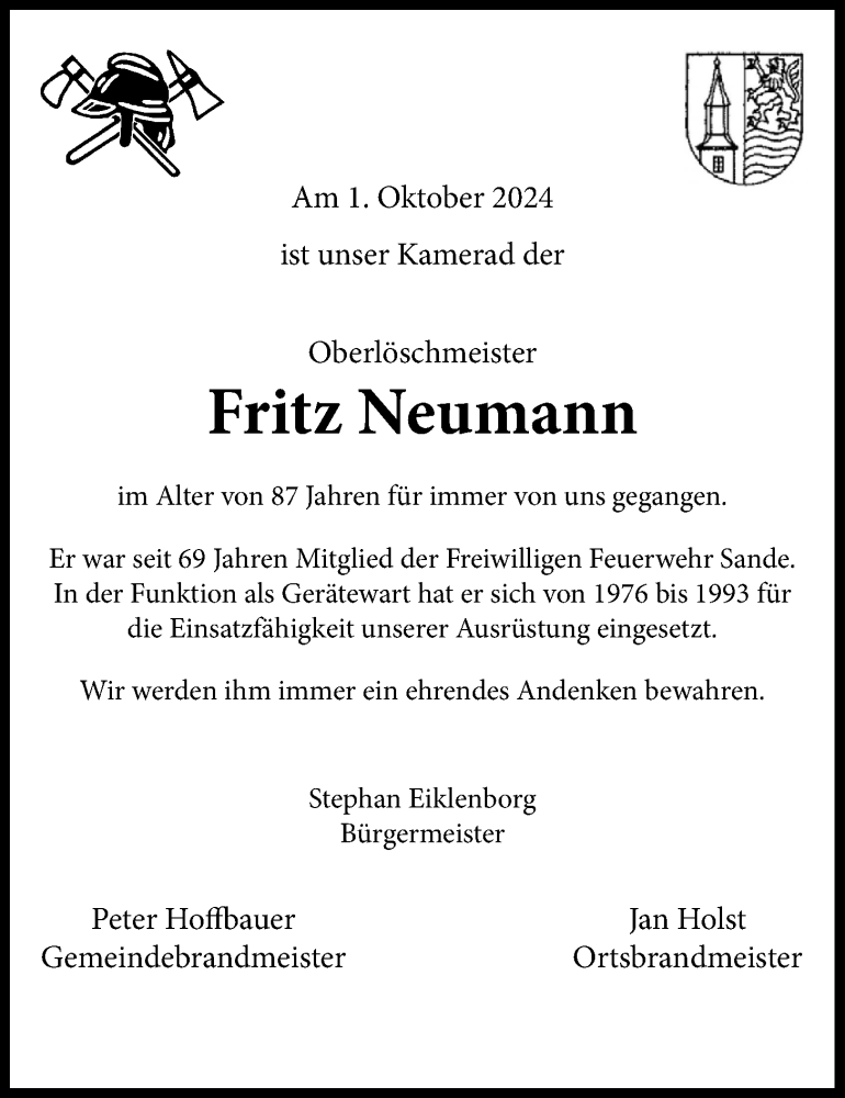 Hier finden Sie alle Traueranzeigen aus der Zeitung, die bisher für Fritz Neumann erschienen sind. Weitere Traueranzeigen, die in der Zeitung erscheinen, werden hier ebenfalls aufgelistet