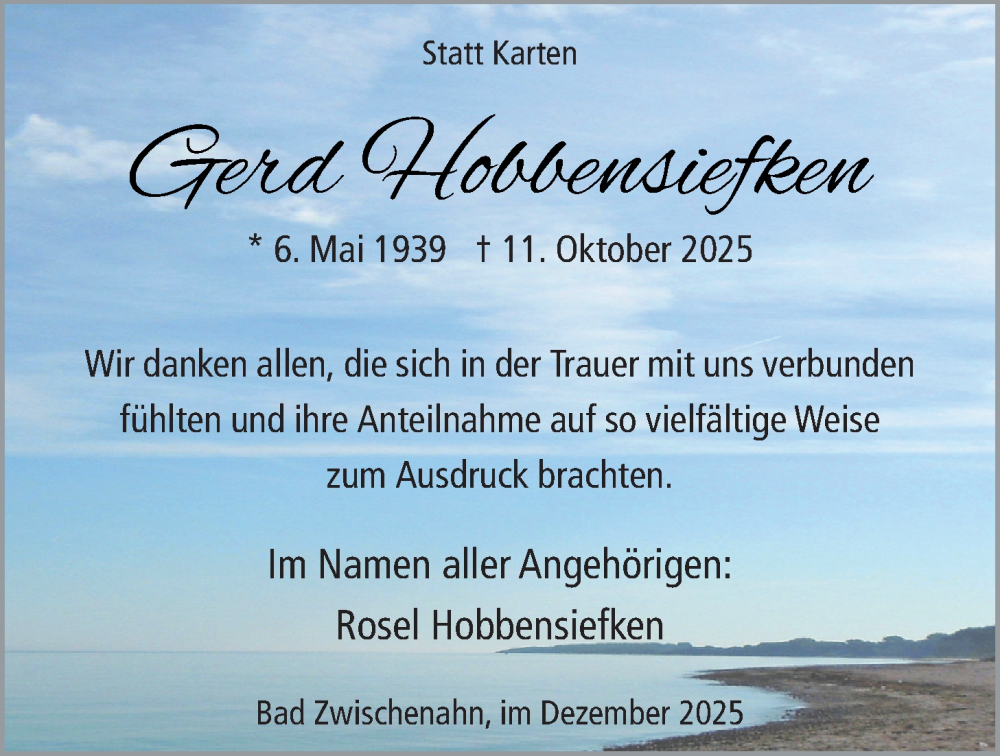 Hier finden Sie alle Traueranzeigen aus der Zeitung, die bisher für Gerd Hobbensiefken erschienen sind. Weitere Traueranzeigen, die in der Zeitung erscheinen, werden hier ebenfalls aufgelistet
