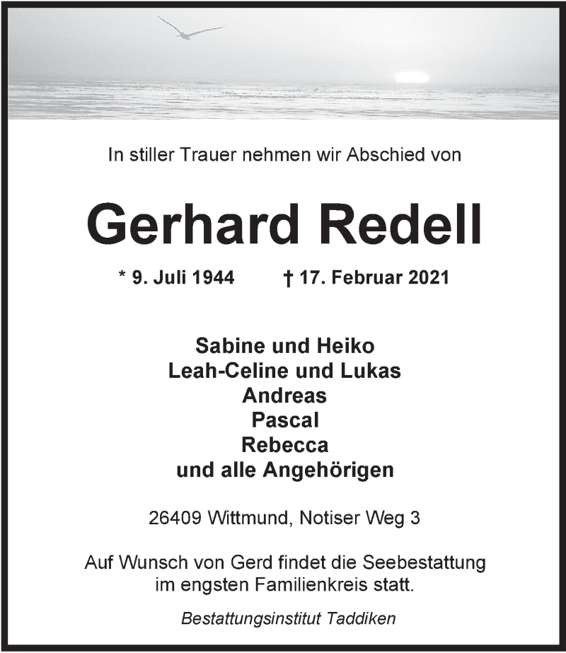 Hier finden Sie alle Traueranzeigen aus der Zeitung, die bisher für Gerhard Redell erschienen sind. Weitere Traueranzeigen, die in der Zeitung erscheinen, werden hier ebenfalls aufgelistet