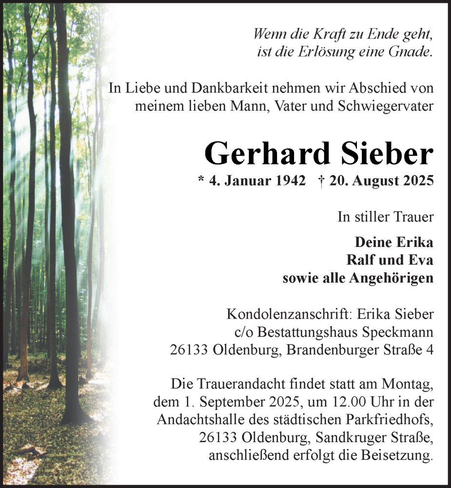 Hier finden Sie alle Traueranzeigen aus der Zeitung, die bisher für Gerhard Sieber erschienen sind. Weitere Traueranzeigen, die in der Zeitung erscheinen, werden hier ebenfalls aufgelistet