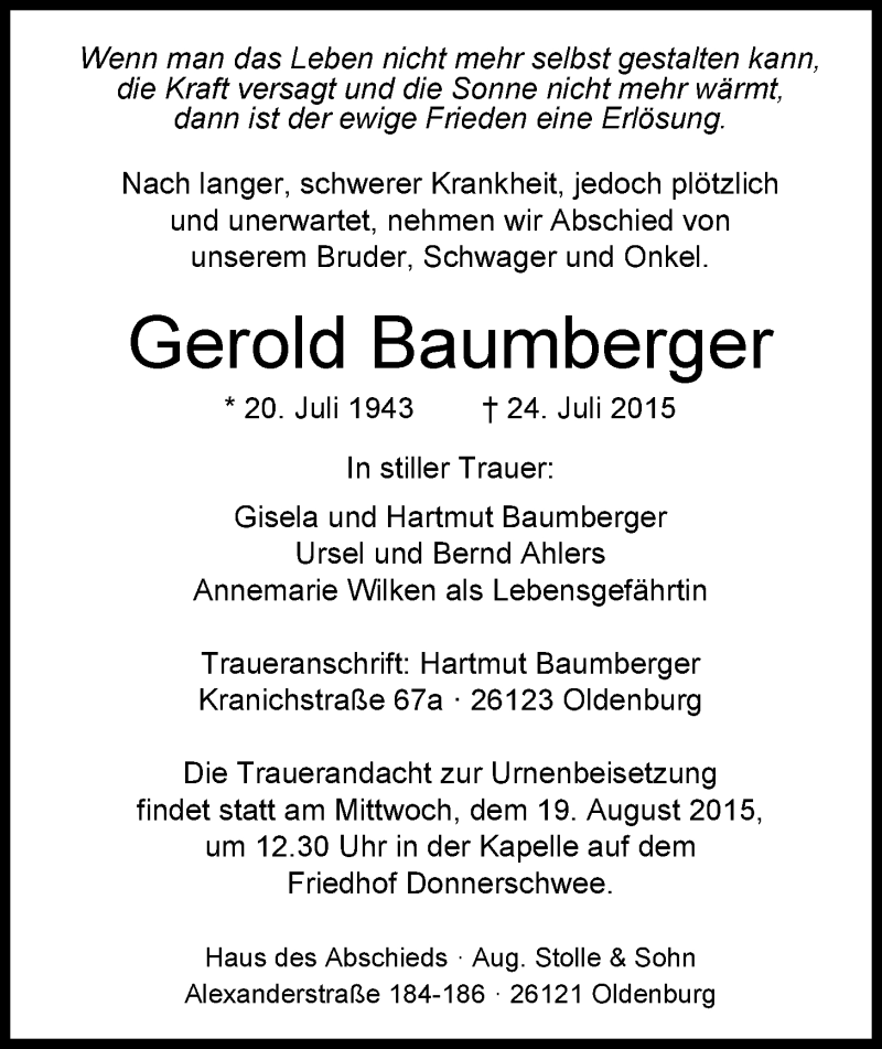 Hier finden Sie alle Traueranzeigen aus der Zeitung, die bisher für Gerold Baumberger erschienen sind. Weitere Traueranzeigen, die in der Zeitung erscheinen, werden hier ebenfalls aufgelistet