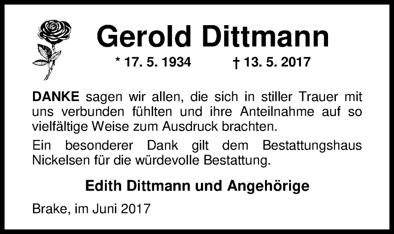 Hier finden Sie alle Traueranzeigen aus der Zeitung, die bisher für Gerold Dittmann erschienen sind. Weitere Traueranzeigen, die in der Zeitung erscheinen, werden hier ebenfalls aufgelistet