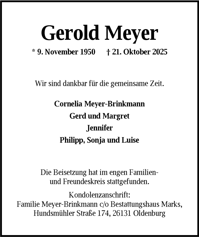 Hier finden Sie alle Traueranzeigen aus der Zeitung, die bisher für Gerold Meyer erschienen sind. Weitere Traueranzeigen, die in der Zeitung erscheinen, werden hier ebenfalls aufgelistet