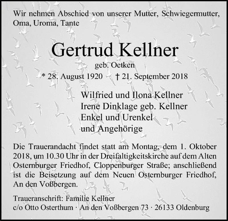 Hier finden Sie alle Traueranzeigen aus der Zeitung, die bisher für Gertrud Kellner erschienen sind. Weitere Traueranzeigen, die in der Zeitung erscheinen, werden hier ebenfalls aufgelistet