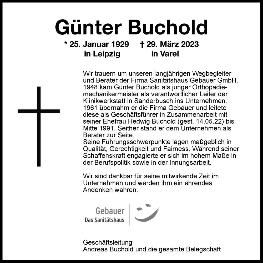 Hier finden Sie alle Traueranzeigen aus der Zeitung, die bisher für Günter Buchold erschienen sind. Weitere Traueranzeigen, die in der Zeitung erscheinen, werden hier ebenfalls aufgelistet