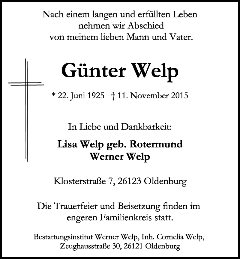 Hier finden Sie alle Traueranzeigen aus der Zeitung, die bisher für Günter Welp erschienen sind. Weitere Traueranzeigen, die in der Zeitung erscheinen, werden hier ebenfalls aufgelistet