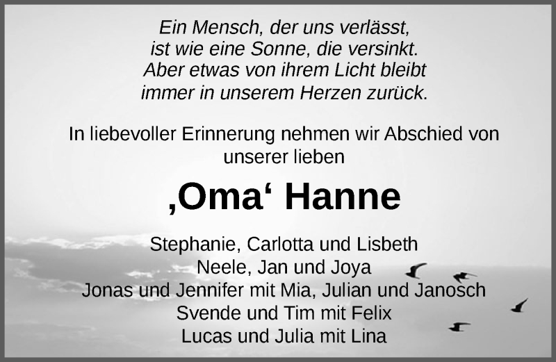 Hier finden Sie alle Traueranzeigen aus der Zeitung, die bisher für Hannelore Holst erschienen sind. Weitere Traueranzeigen, die in der Zeitung erscheinen, werden hier ebenfalls aufgelistet