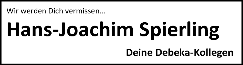Hier finden Sie alle Traueranzeigen aus der Zeitung, die bisher für Hans-Joachim Spierling erschienen sind. Weitere Traueranzeigen, die in der Zeitung erscheinen, werden hier ebenfalls aufgelistet