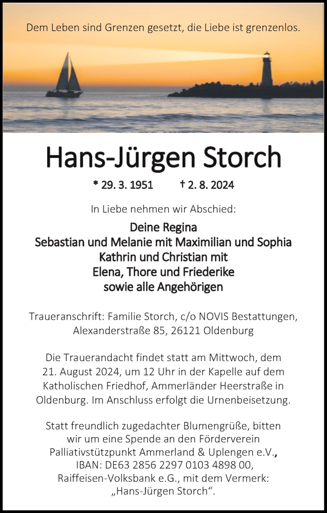 Hier finden Sie alle Traueranzeigen aus der Zeitung, die bisher für Hans-Jürgen Storch erschienen sind. Weitere Traueranzeigen, die in der Zeitung erscheinen, werden hier ebenfalls aufgelistet