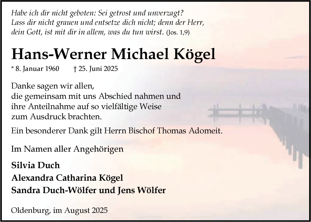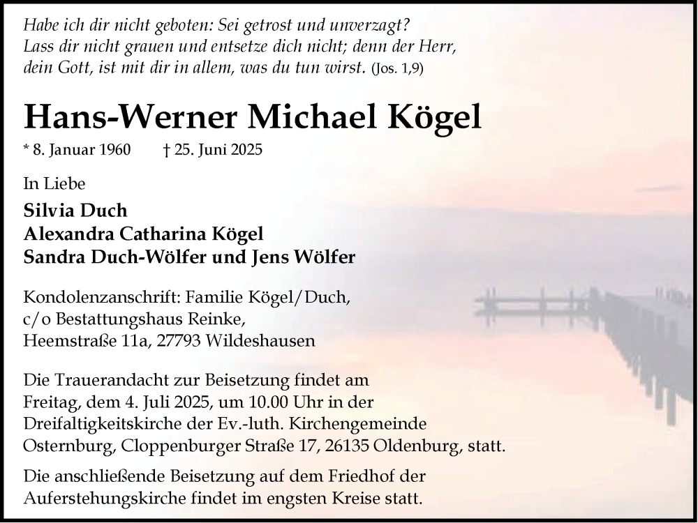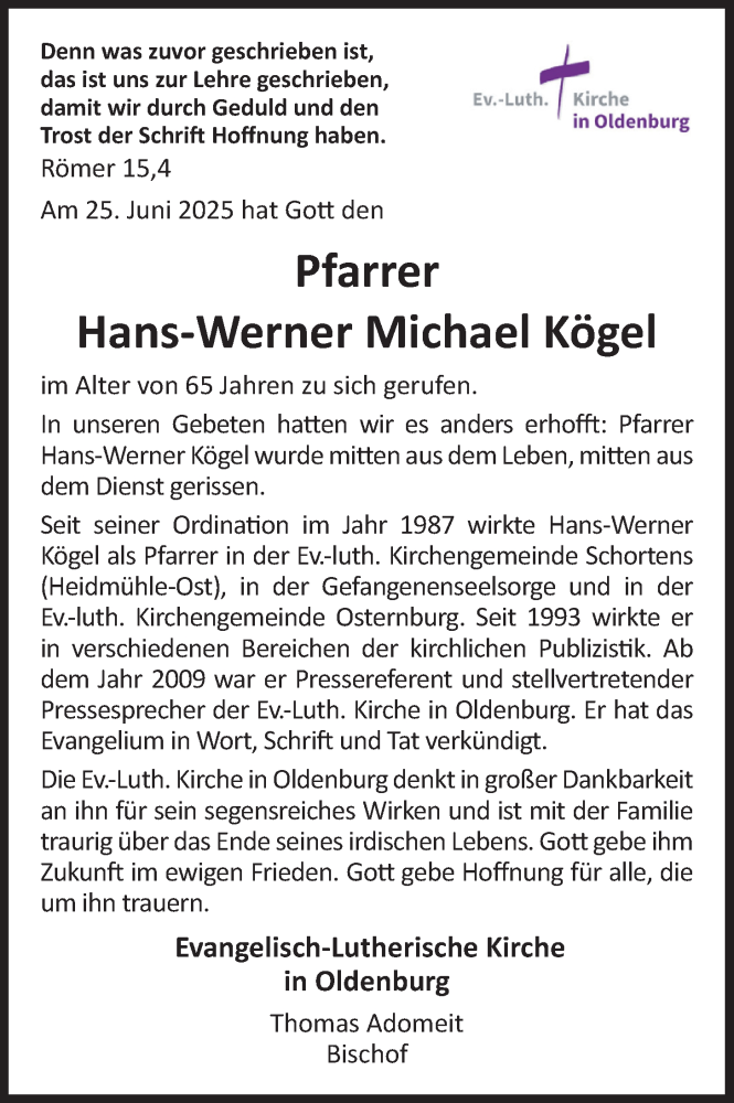 Hier finden Sie alle Traueranzeigen aus der Zeitung, die bisher für Hans-Werner Michael Kögel erschienen sind. Weitere Traueranzeigen, die in der Zeitung erscheinen, werden hier ebenfalls aufgelistet