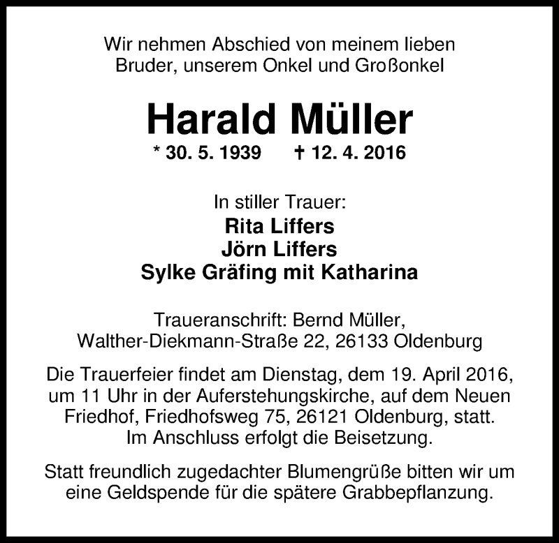 Hier finden Sie alle Traueranzeigen aus der Zeitung, die bisher für Harald Müller erschienen sind. Weitere Traueranzeigen, die in der Zeitung erscheinen, werden hier ebenfalls aufgelistet