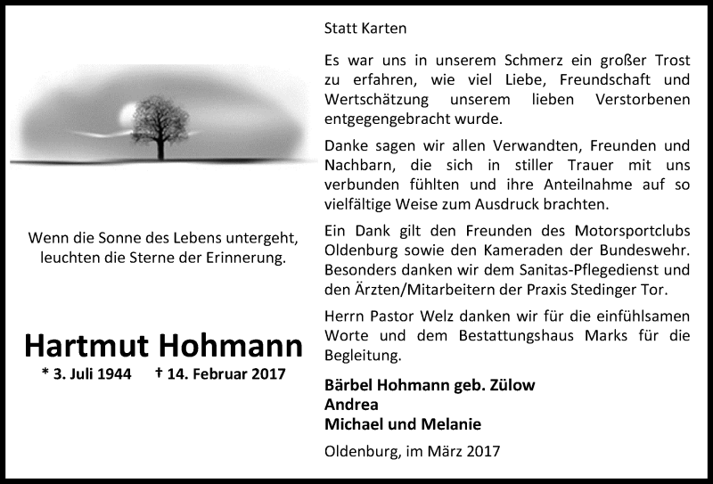 Hier finden Sie alle Traueranzeigen aus der Zeitung, die bisher für Hartmut Hohmann erschienen sind. Weitere Traueranzeigen, die in der Zeitung erscheinen, werden hier ebenfalls aufgelistet