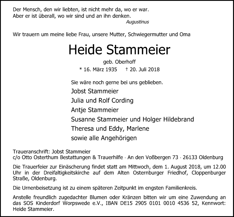 Hier finden Sie alle Traueranzeigen aus der Zeitung, die bisher für Heide Stammeier erschienen sind. Weitere Traueranzeigen, die in der Zeitung erscheinen, werden hier ebenfalls aufgelistet