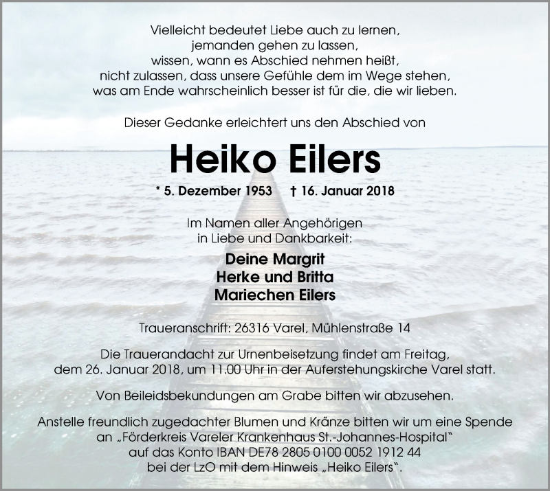 Hier finden Sie alle Traueranzeigen aus der Zeitung, die bisher für Heiko Eilers erschienen sind. Weitere Traueranzeigen, die in der Zeitung erscheinen, werden hier ebenfalls aufgelistet