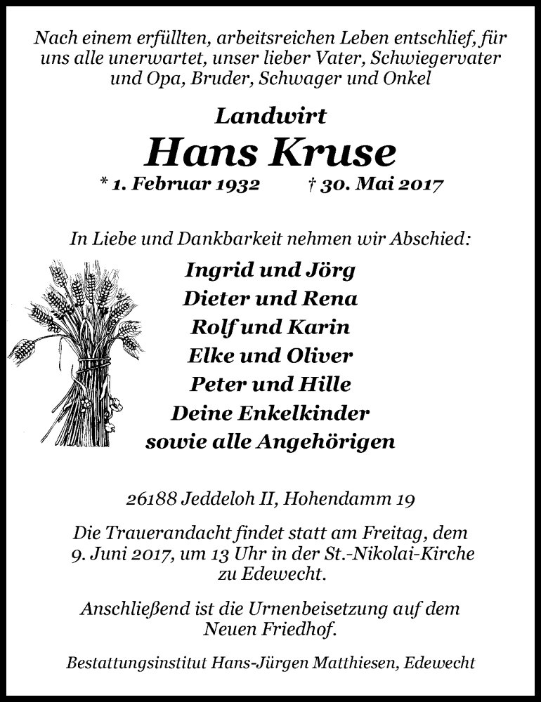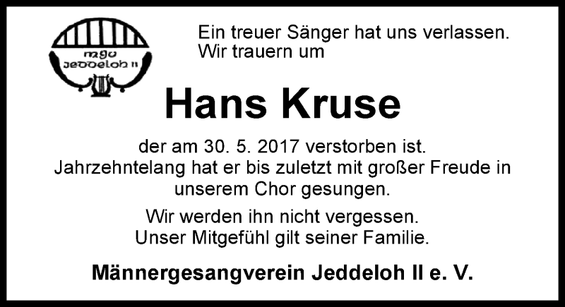 Hier finden Sie alle Traueranzeigen aus der Zeitung, die bisher für Hans Kruse erschienen sind. Weitere Traueranzeigen, die in der Zeitung erscheinen, werden hier ebenfalls aufgelistet