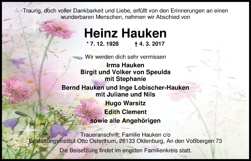 Hier finden Sie alle Traueranzeigen aus der Zeitung, die bisher für Heinz Hauken erschienen sind. Weitere Traueranzeigen, die in der Zeitung erscheinen, werden hier ebenfalls aufgelistet
