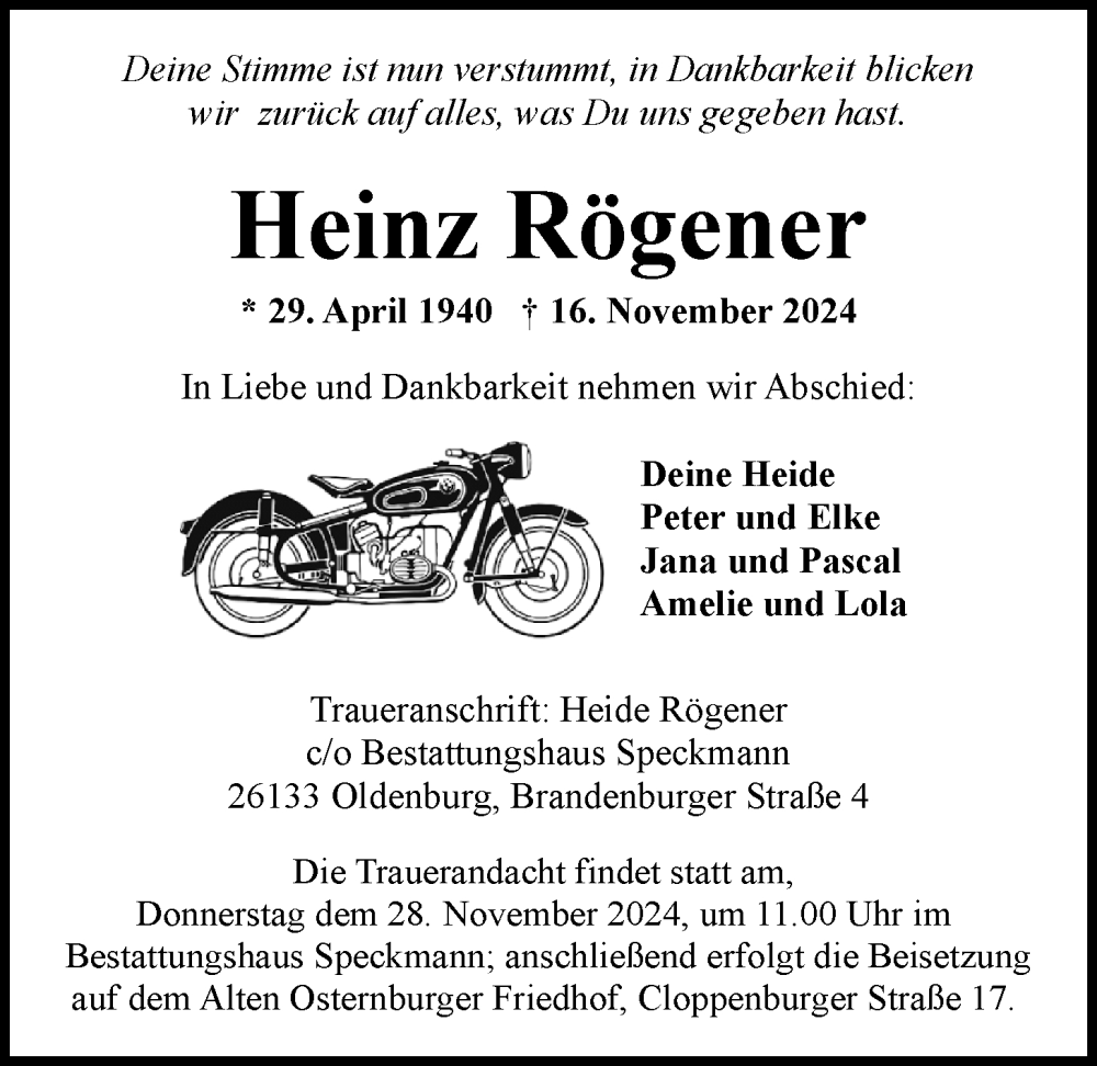Hier finden Sie alle Traueranzeigen aus der Zeitung, die bisher für Heinz Rögener erschienen sind. Weitere Traueranzeigen, die in der Zeitung erscheinen, werden hier ebenfalls aufgelistet