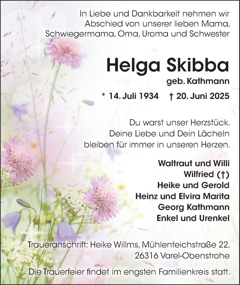 Hier finden Sie alle Traueranzeigen aus der Zeitung, die bisher für Helga Skibba erschienen sind. Weitere Traueranzeigen, die in der Zeitung erscheinen, werden hier ebenfalls aufgelistet