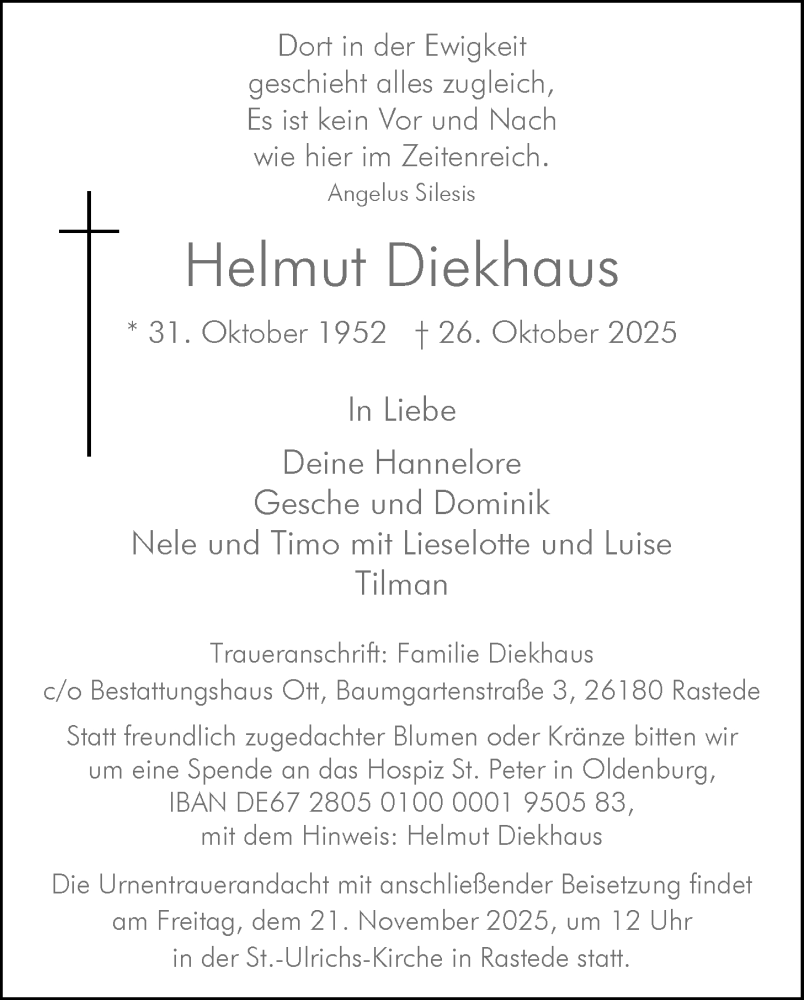 Hier finden Sie alle Traueranzeigen aus der Zeitung, die bisher für Helmut Diekhaus erschienen sind. Weitere Traueranzeigen, die in der Zeitung erscheinen, werden hier ebenfalls aufgelistet