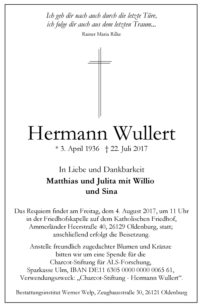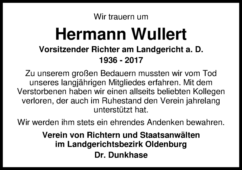 Hier finden Sie alle Traueranzeigen aus der Zeitung, die bisher für Hermann Wullert erschienen sind. Weitere Traueranzeigen, die in der Zeitung erscheinen, werden hier ebenfalls aufgelistet