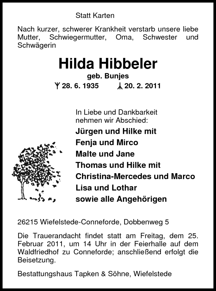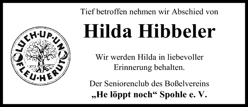 Hier finden Sie alle Traueranzeigen aus der Zeitung, die bisher für Hilda Hibbeler erschienen sind. Weitere Traueranzeigen, die in der Zeitung erscheinen, werden hier ebenfalls aufgelistet