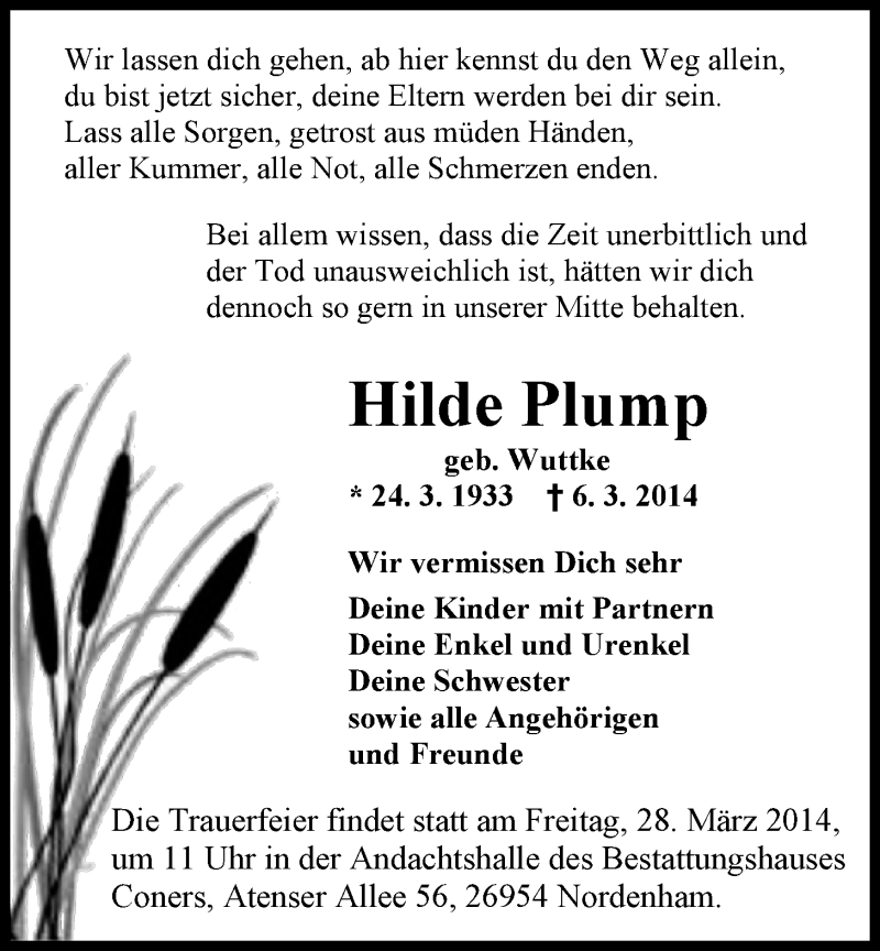 Hier finden Sie alle Traueranzeigen aus der Zeitung, die bisher für Hilde Plump erschienen sind. Weitere Traueranzeigen, die in der Zeitung erscheinen, werden hier ebenfalls aufgelistet