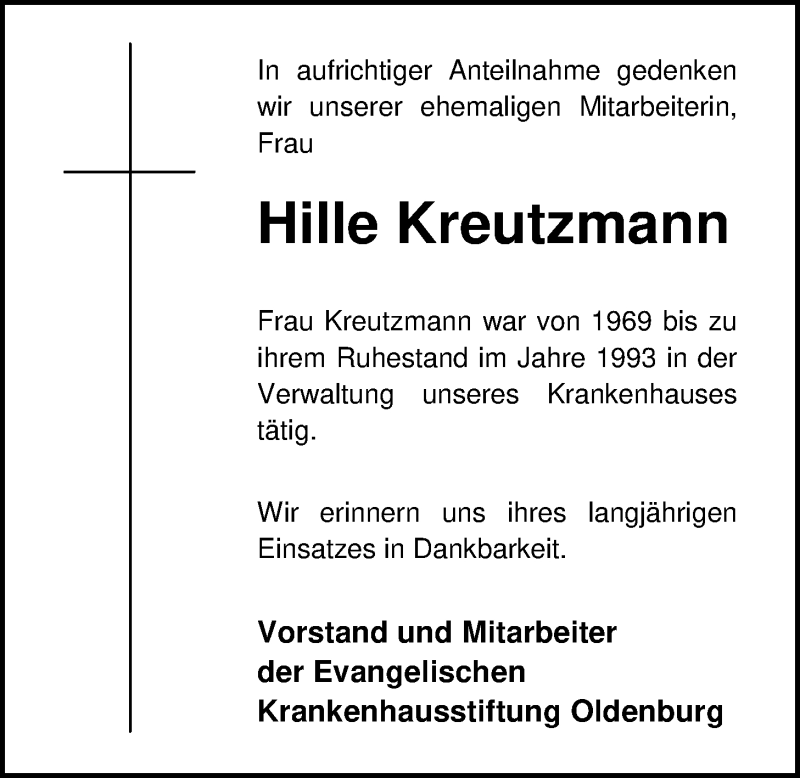 Hier finden Sie alle Traueranzeigen aus der Zeitung, die bisher für Hille Kreutzmann erschienen sind. Weitere Traueranzeigen, die in der Zeitung erscheinen, werden hier ebenfalls aufgelistet